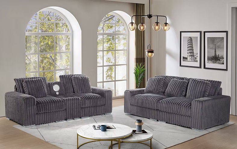 Plush and posh. Showcase your eye for on-trend texture with the statement-making cord upholstery of this sectional with chaise. Its stunningly soft fabric complementing contemporary color palettes. Sink into the cushions and plan to stay a while—this cozy living room centerpiece highlights your high-end approach to comfort and style.