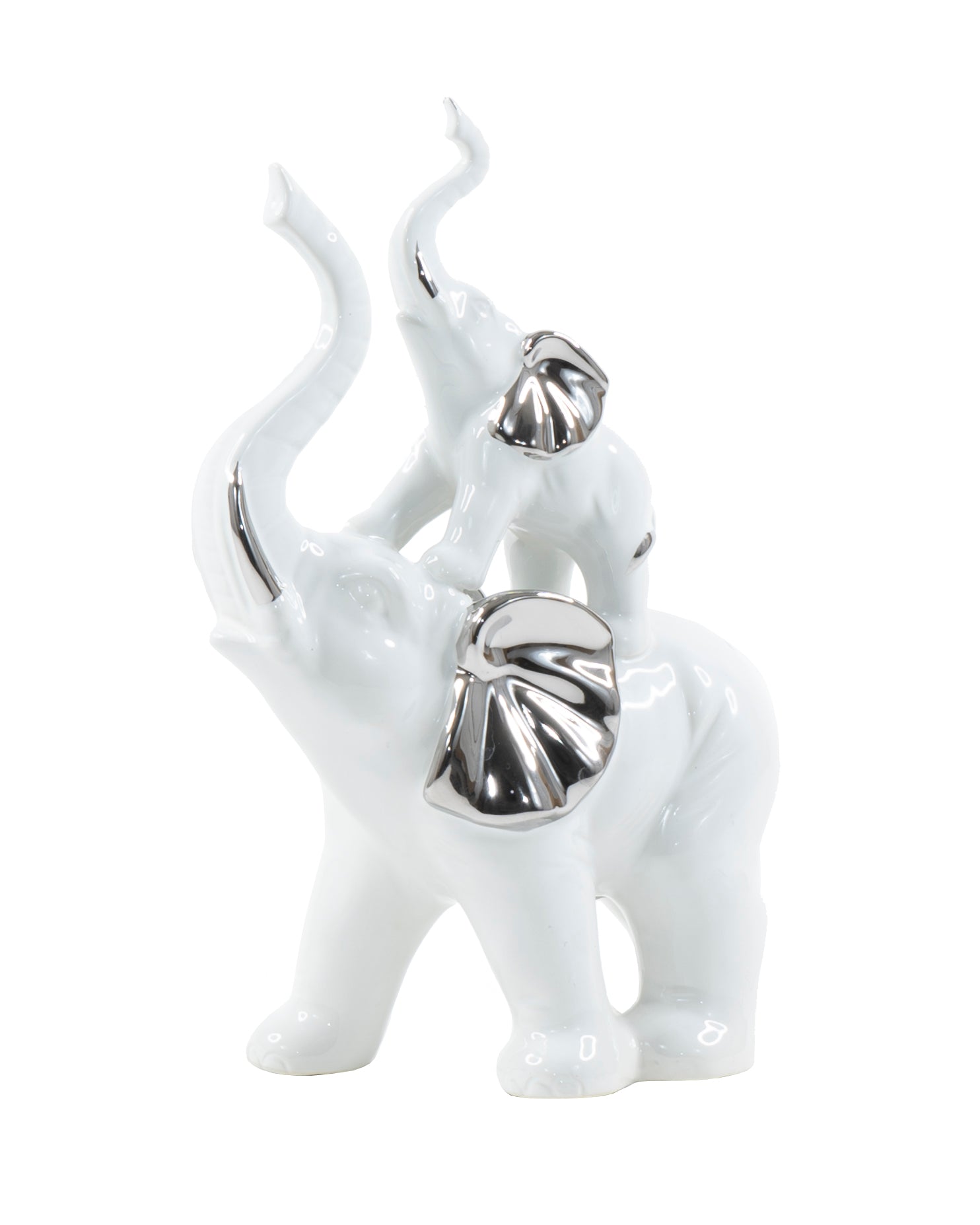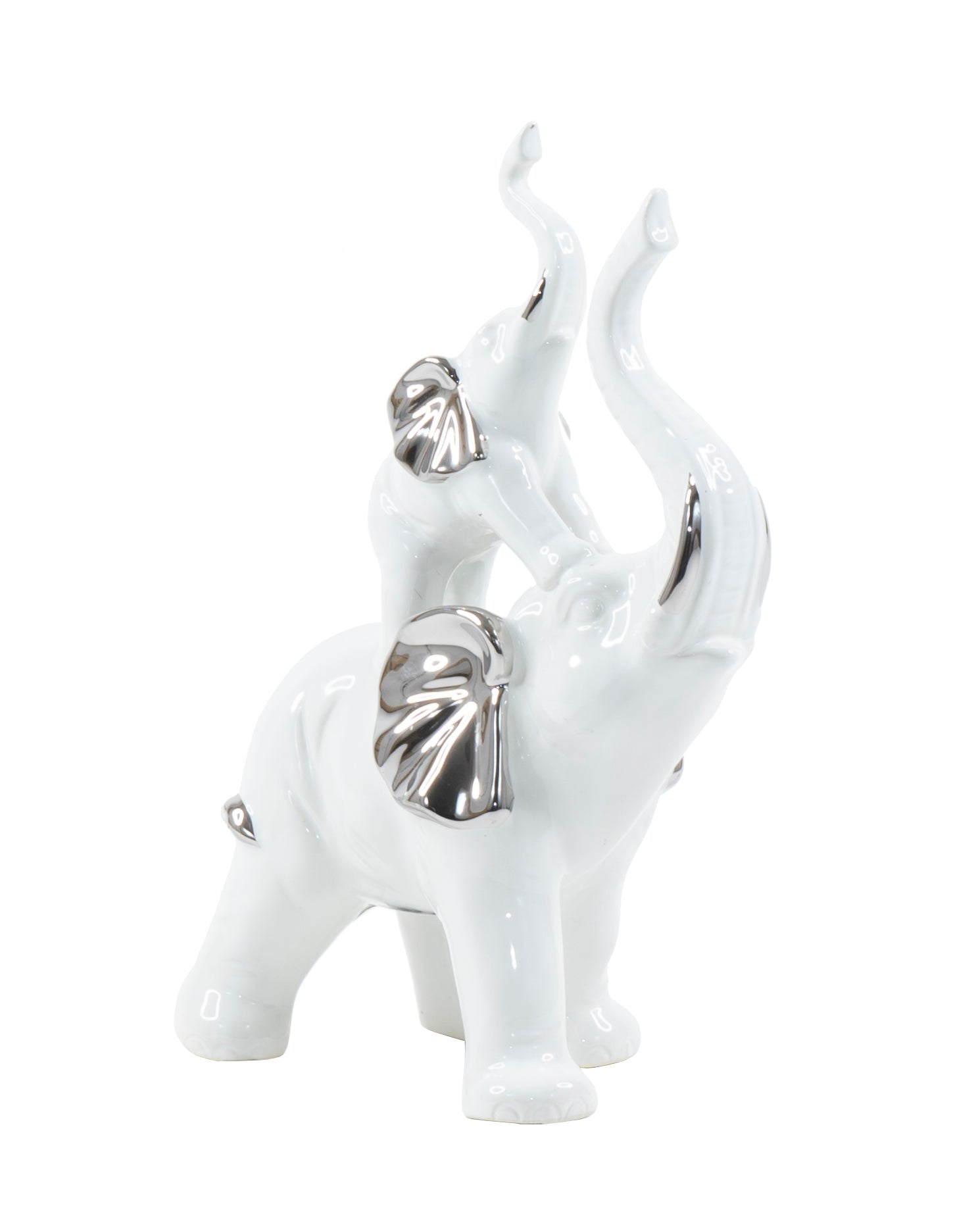 Elephants are a symbol of wisdom and good-luck. Be sure to bring in this statue to you home to embody its symbolism. This statue is a beautiful addition to any accent or corner table in your home. This elegant sculpture is crafted from high quality polystone material with a white and silver two tone finish.