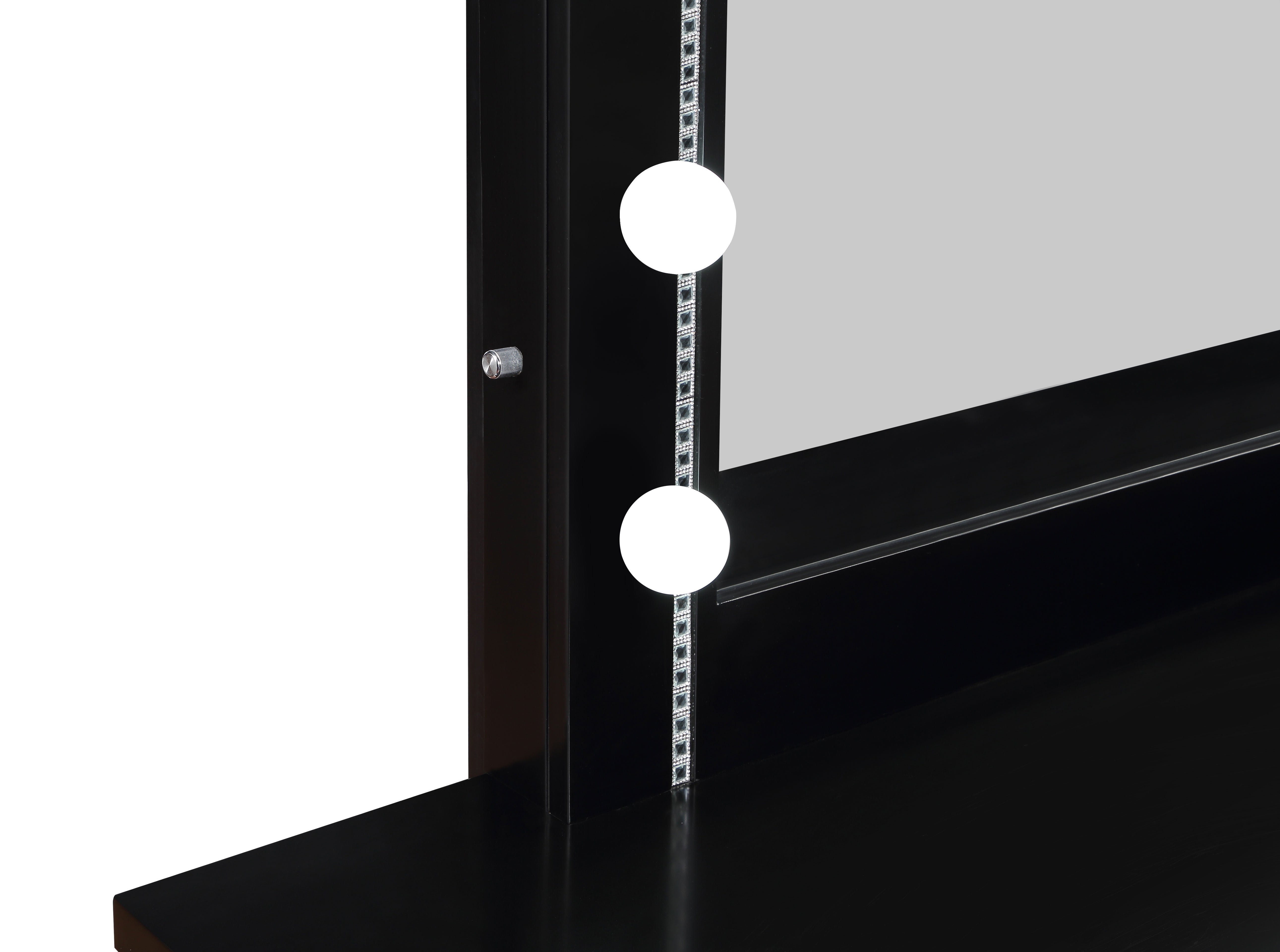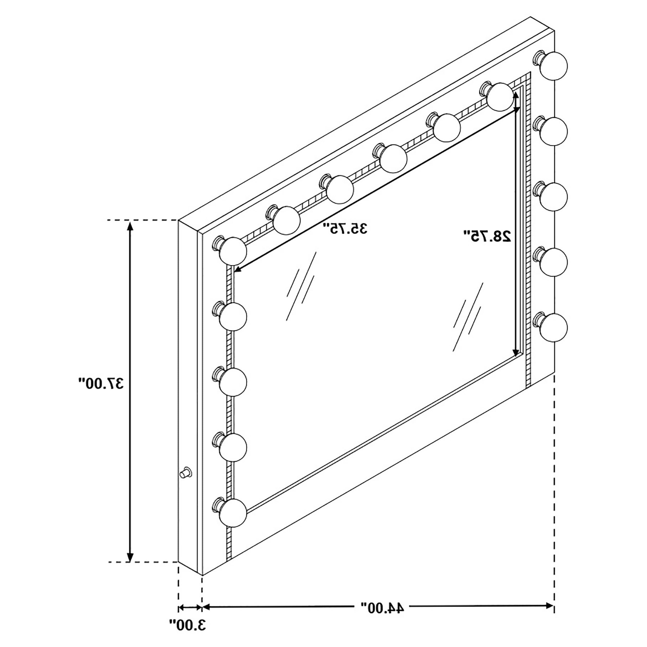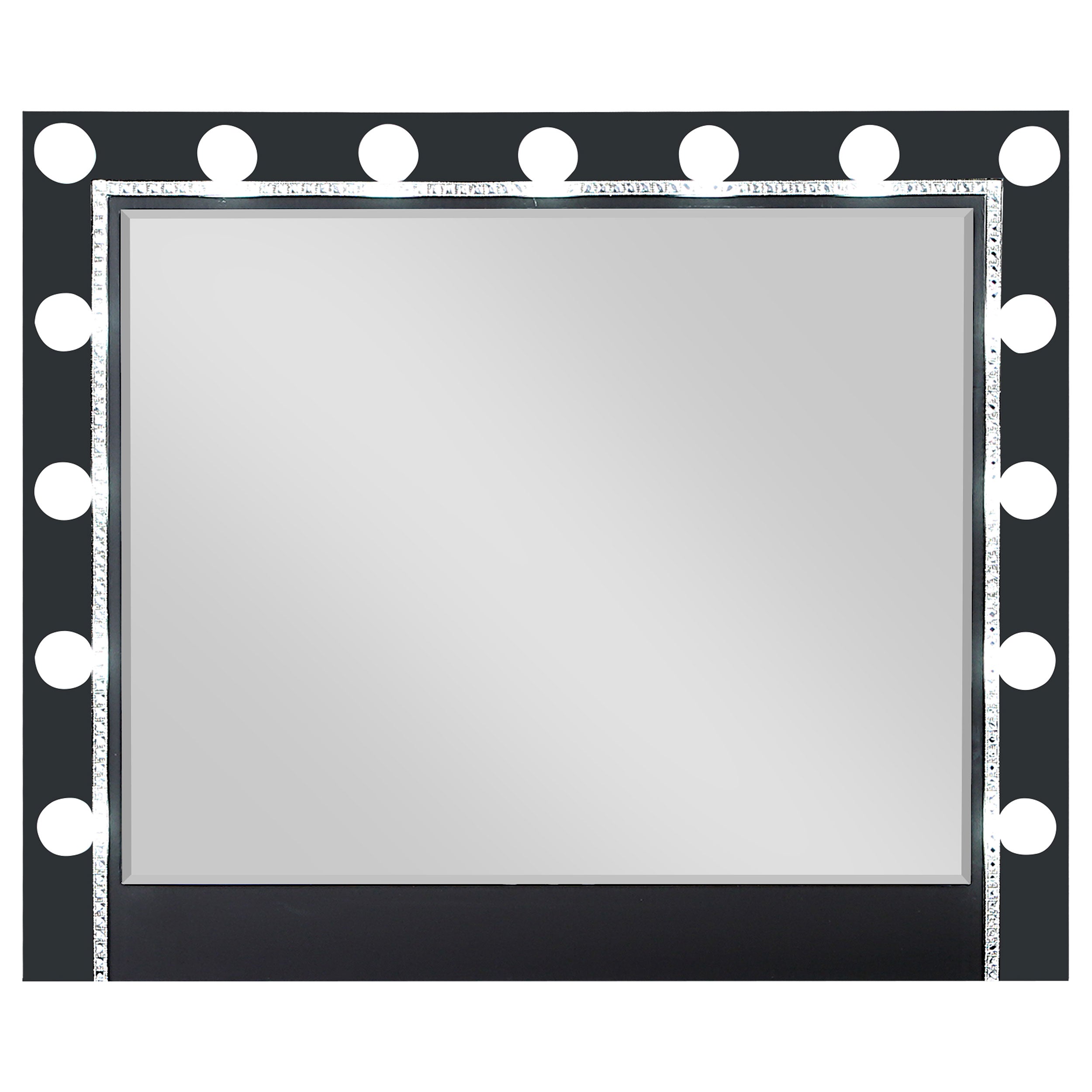 Achieve the perfect glow-up with this stunning, glam-style mirror. Boasting a contrasted two-tone look with a deep black finish, this mirror lends a dramatic flair to a wall. Prepare for workdays and date nights surrounded by an even glow that allows you to apply cosmetics and style your hair perfectly, provided by 15 exposed bulbs. Matching the dresser furniture piece of this stylish bedroom set, this Hollywood mirror showcases a border of glimmering crystal-like mirror tile. A beveled mirror further lends to the timeless expression of this classic vanity mirror.