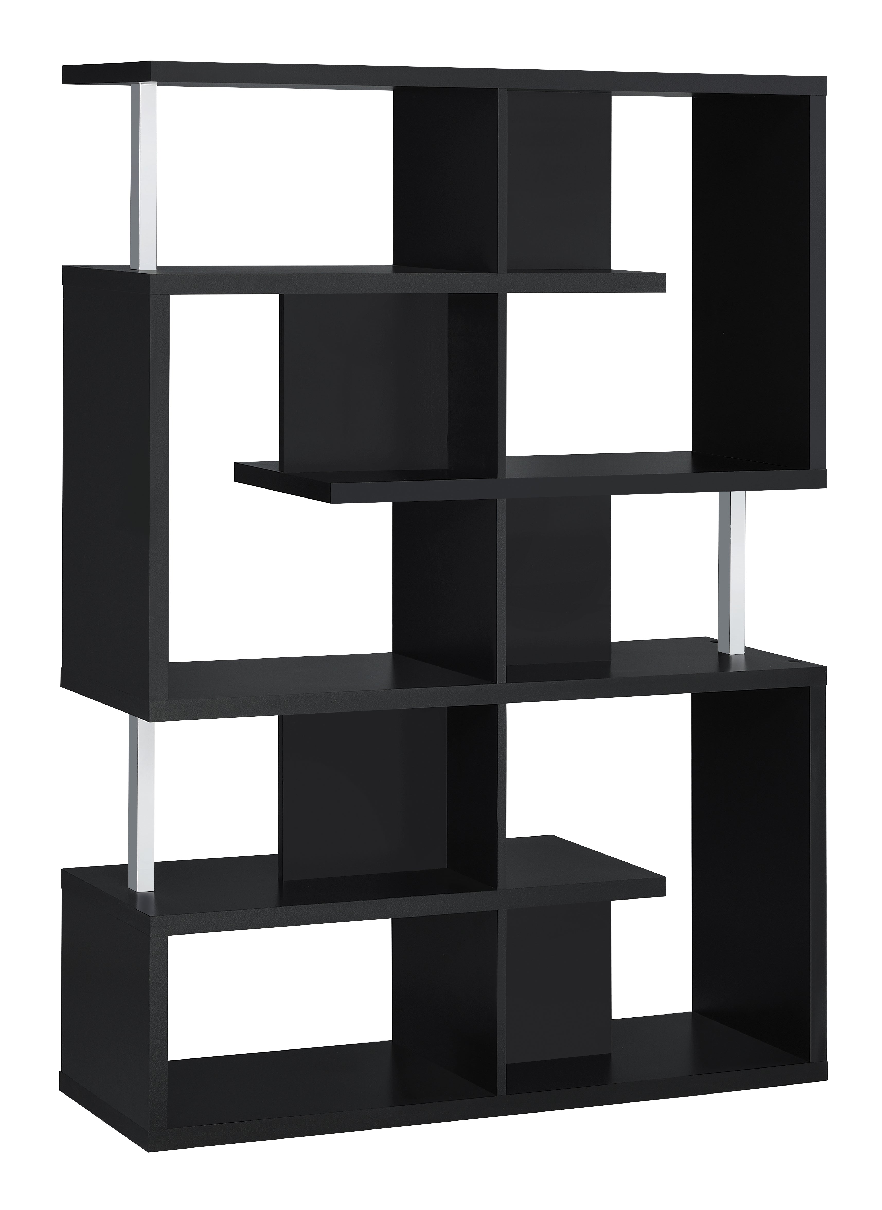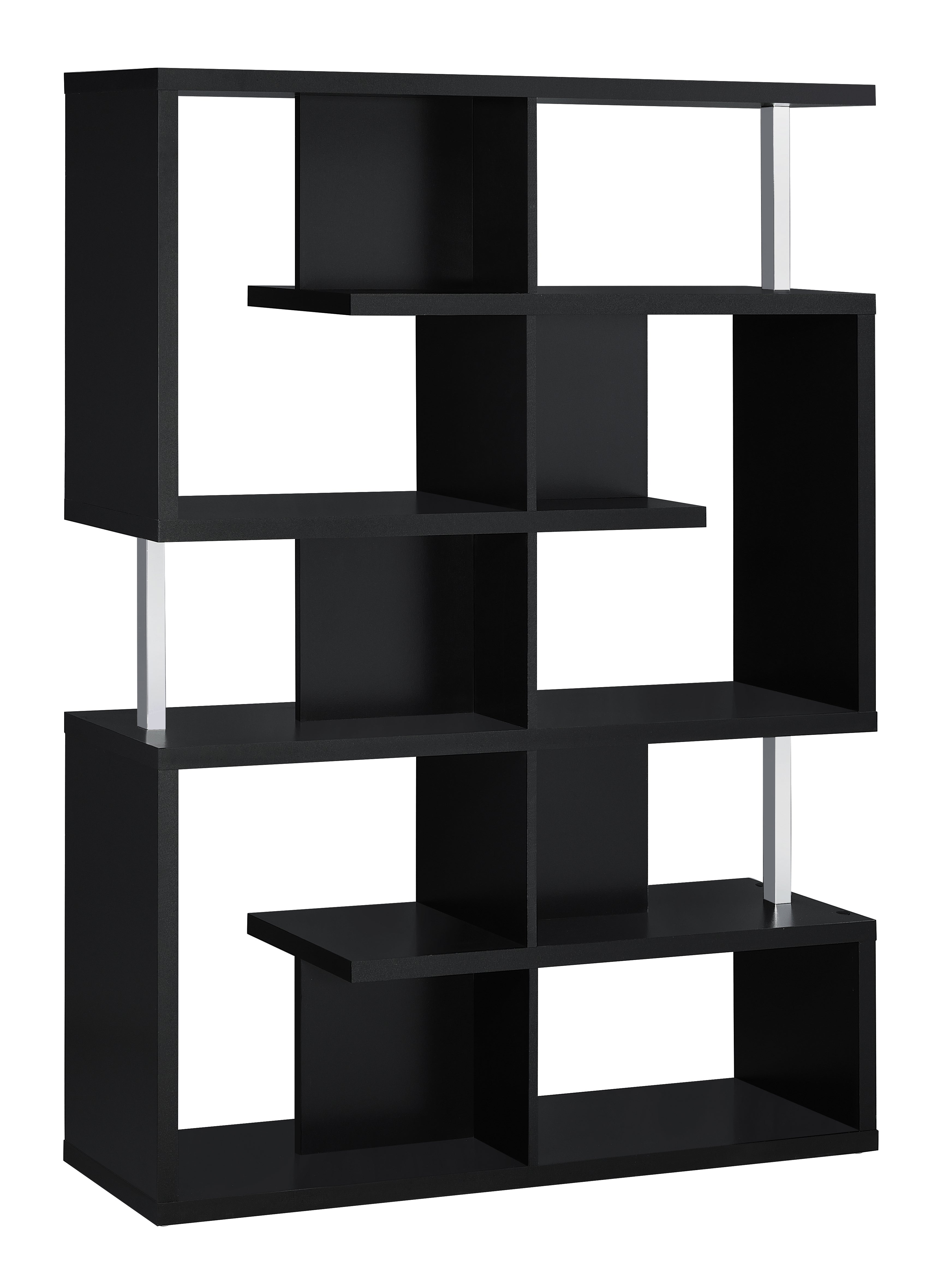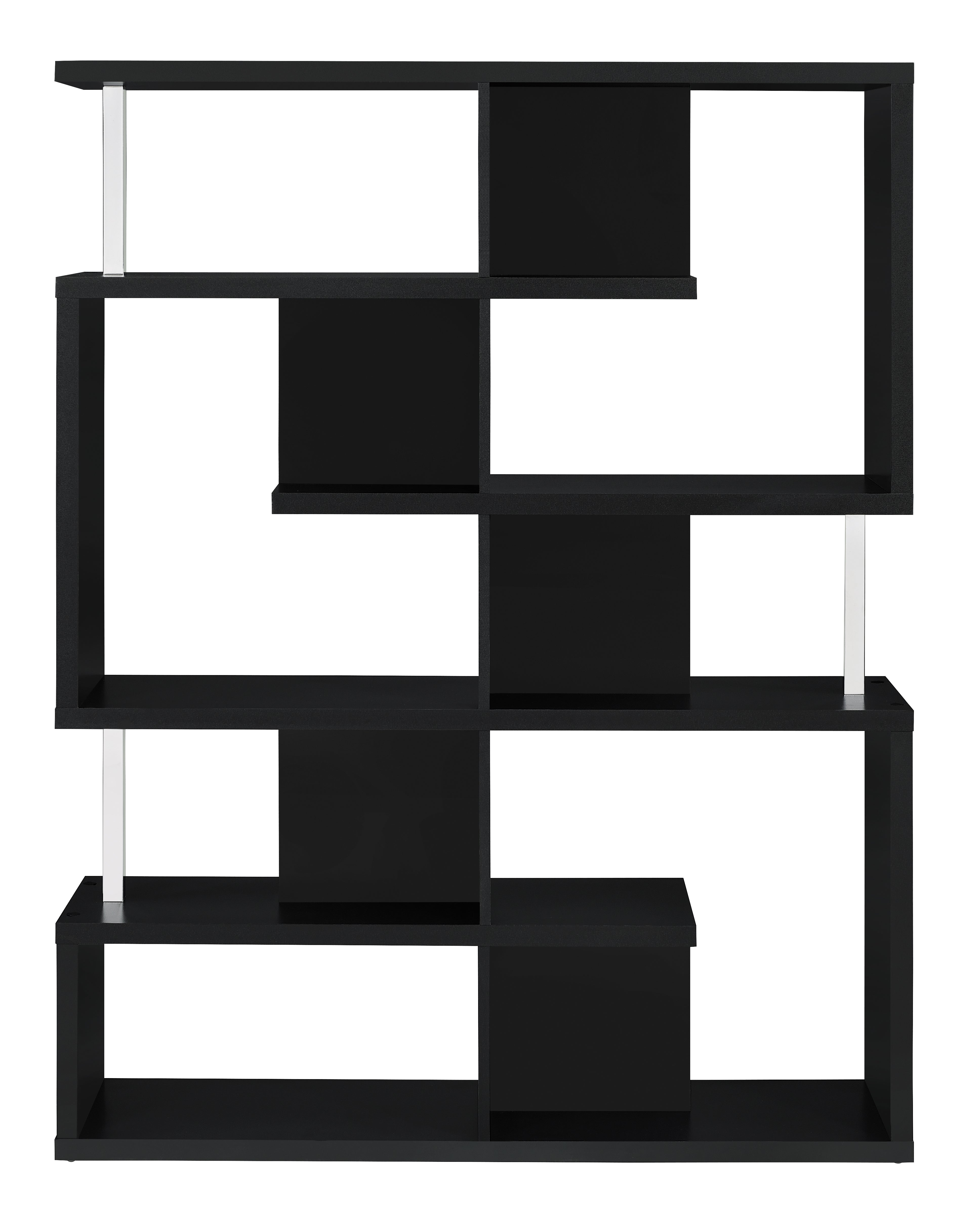 Accentuate an office or living room with style and pizzazz. This double bookcase boasts five tiers of multi-level shelves, providing plenty of space for storage. Choose a black finish for a more subdued look, or white for a kick of contemporary cool. Chrome details liven up its artful design. With its modern silhouette, this bold bookcase is sure to be a conversation piece.