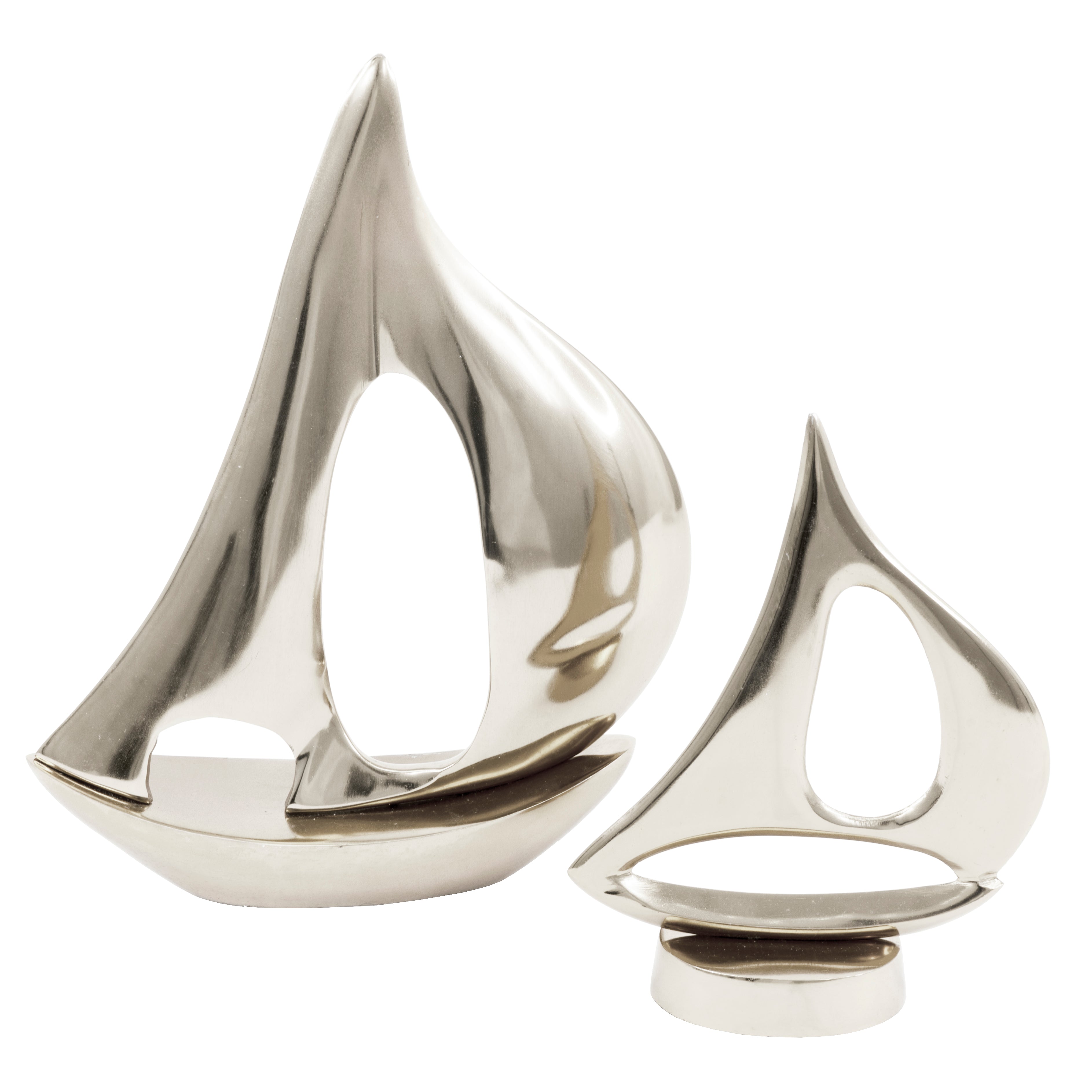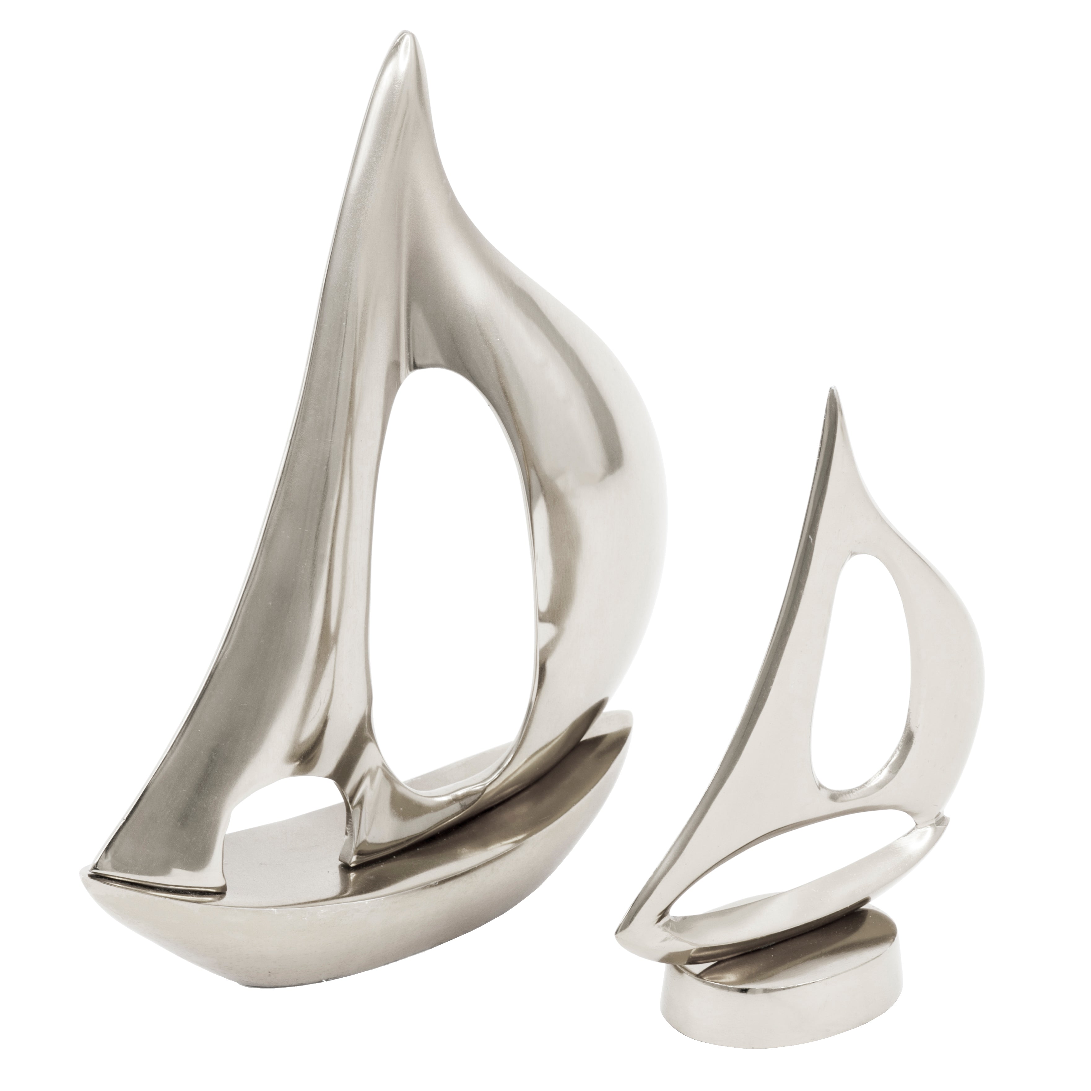 Enhance your interior with our 2pc Sail Boats Tabletop Decor. Crafted with a modern design, these sculptures are perfect for adding a touch of elegance to any space. Made with high-quality materials, these sailboats are a must-have for any art lover.