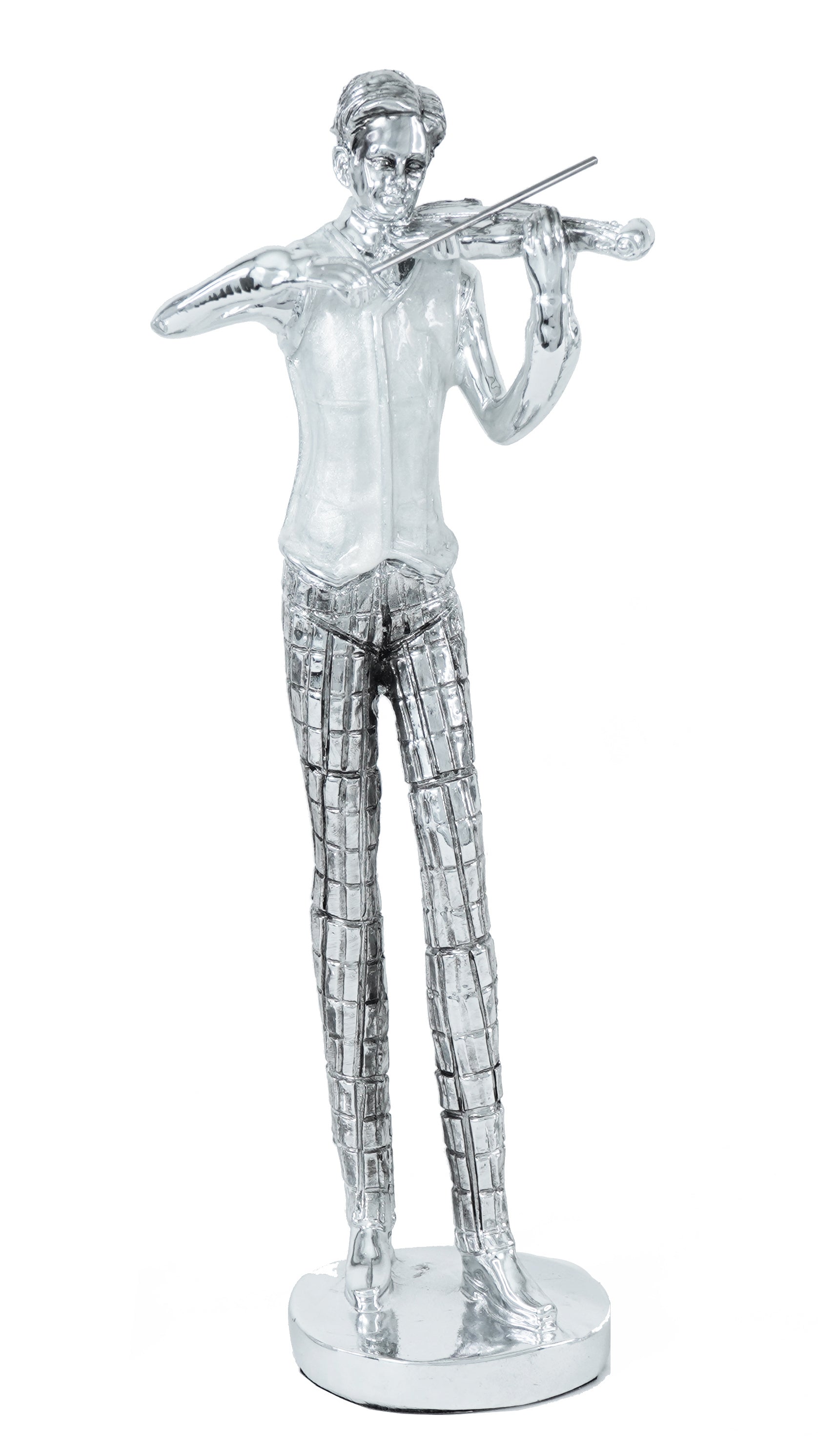 Elegantes Esculturas de Músicos de Pie Plata Poliresina Decoración Hogar Moderna