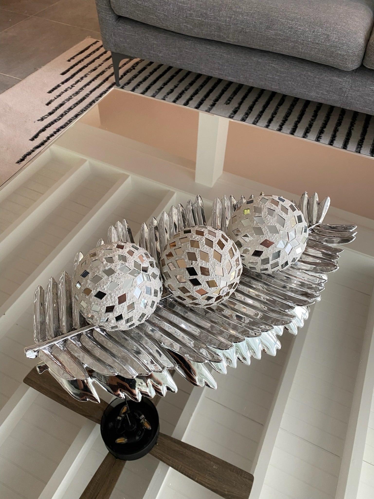 ¡Dale un toque mágico a tu espacio con esta esfera decorativa de mosaico blanco! Su diseño moderno con espejos captura la luz, creando un brillo natural que enciende cualquier rincón. Fabricada con cerámica de alta calidad y detalles plateados, esta pieza es un verdadero tesoro. Prepara tu hogar para un resplandor sin igual y una elegancia que todos admirarán.