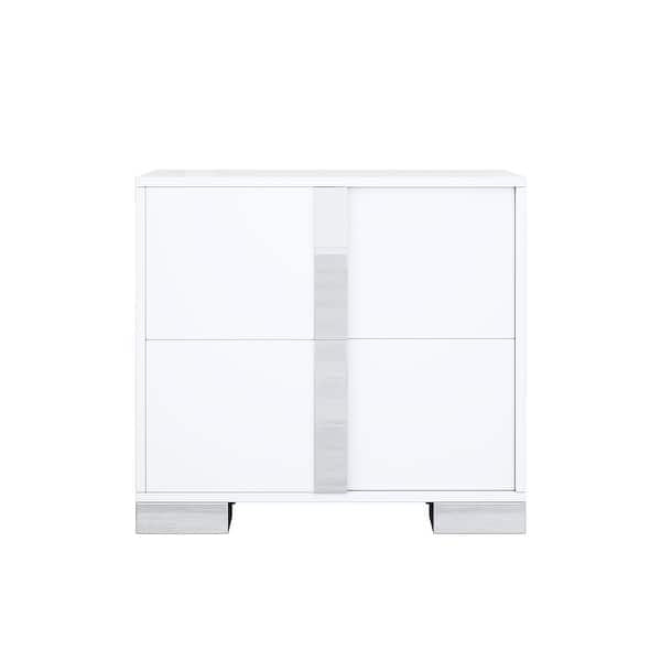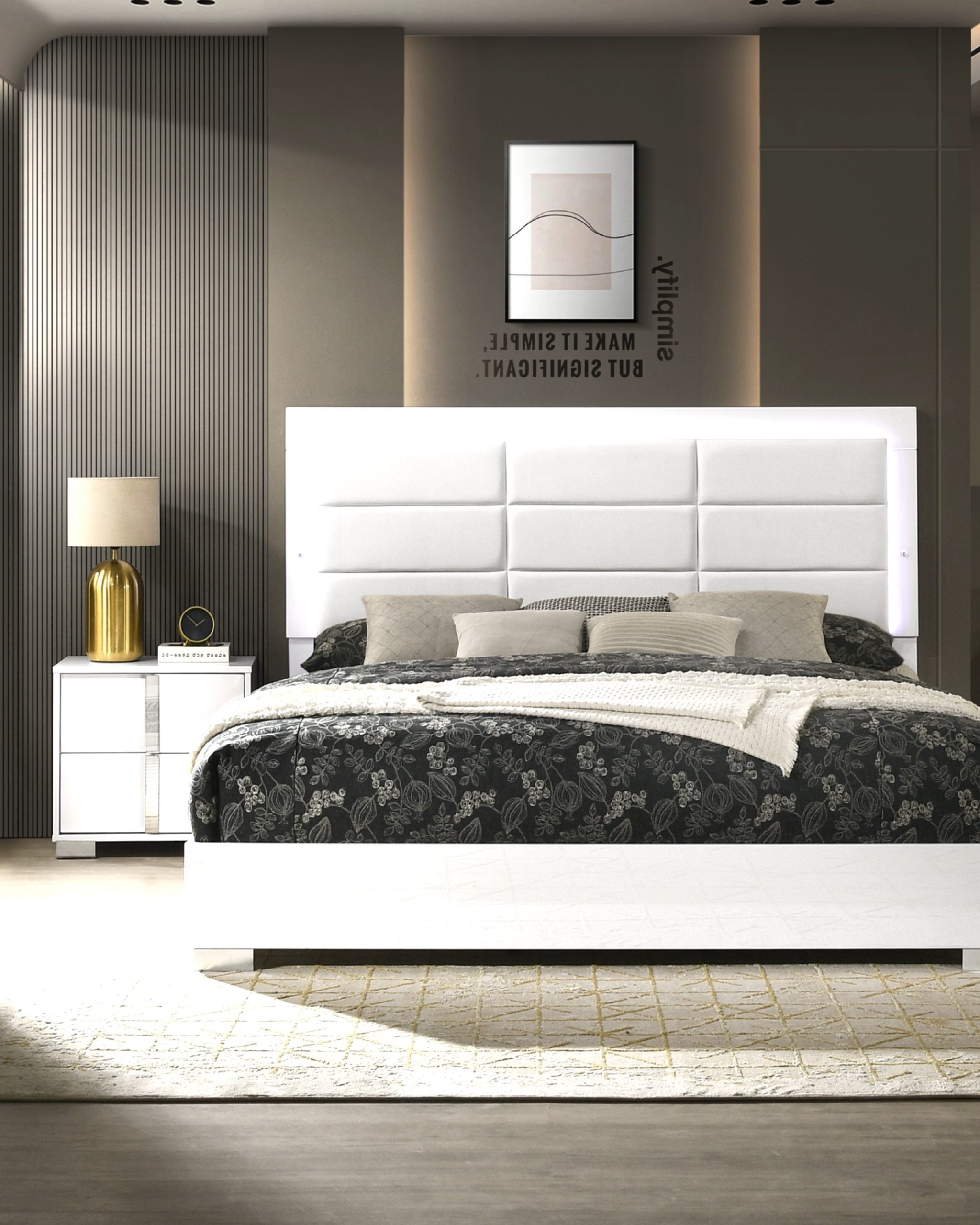 Juego de Dormitorio Manhattan Queen Blanco Brillante Moderno con Cabecero LED