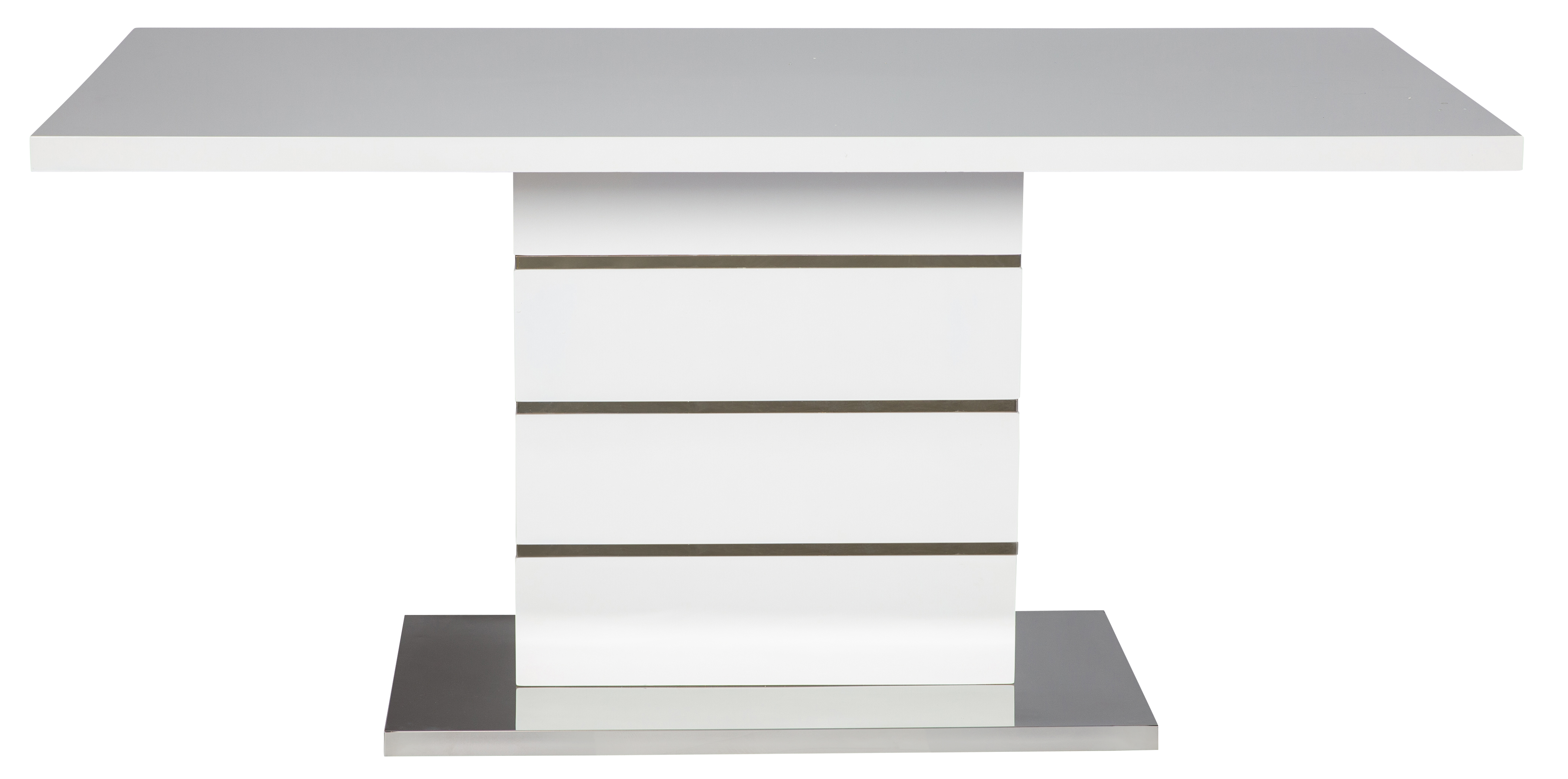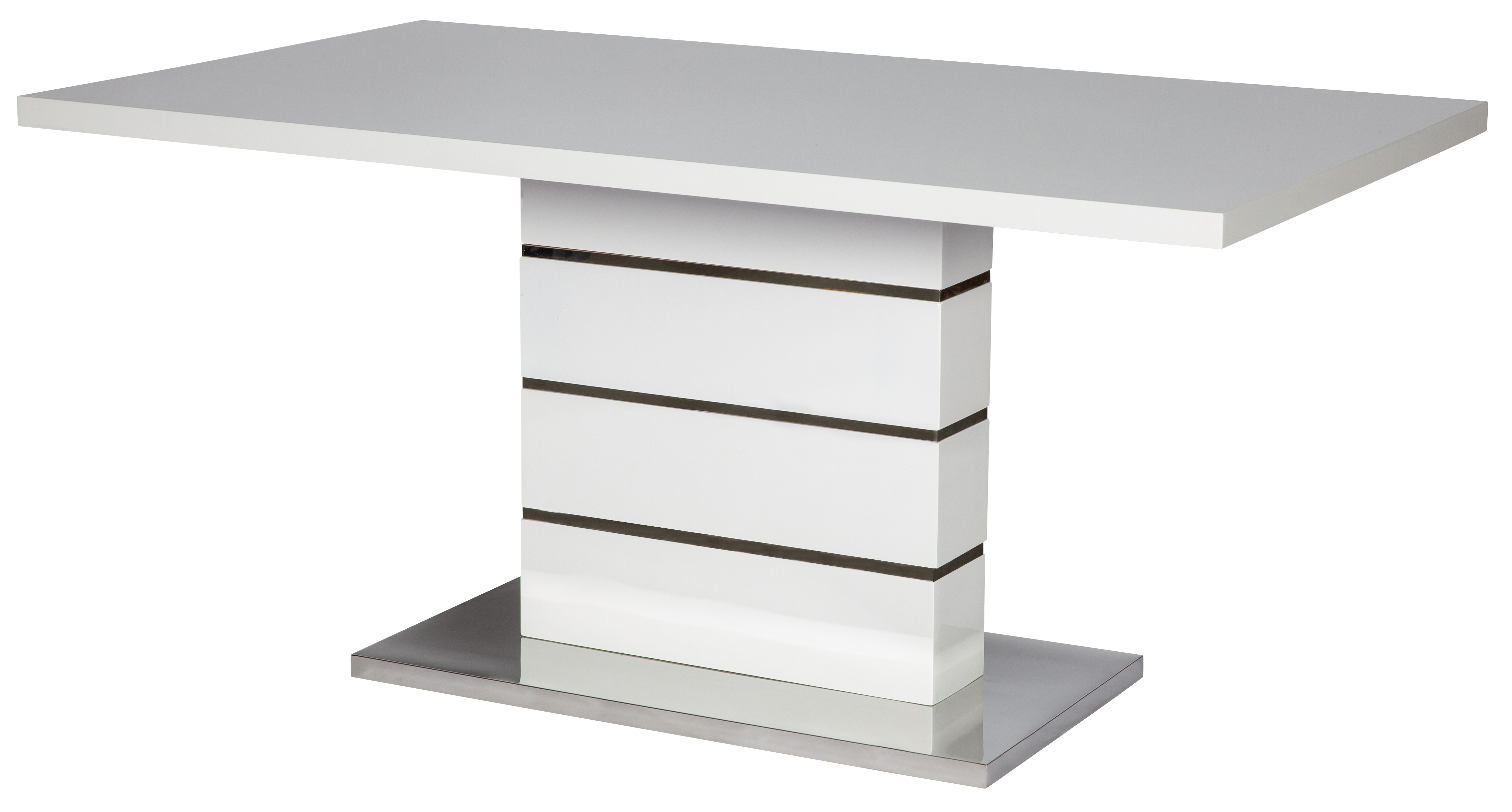 Mesa de Comedor Clara: Blanca Brillante, Detalles Cromados, Moderna y Espaciosa
