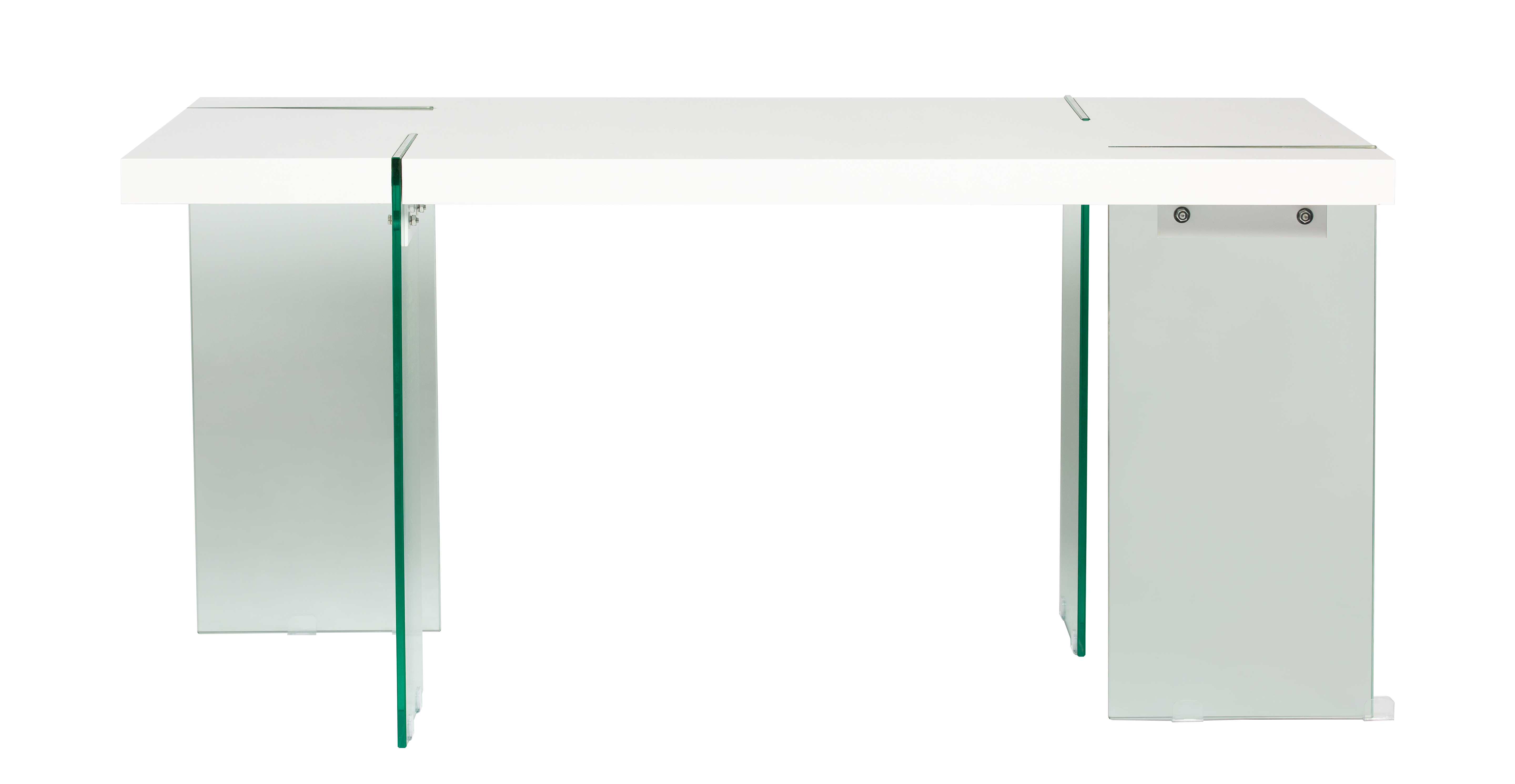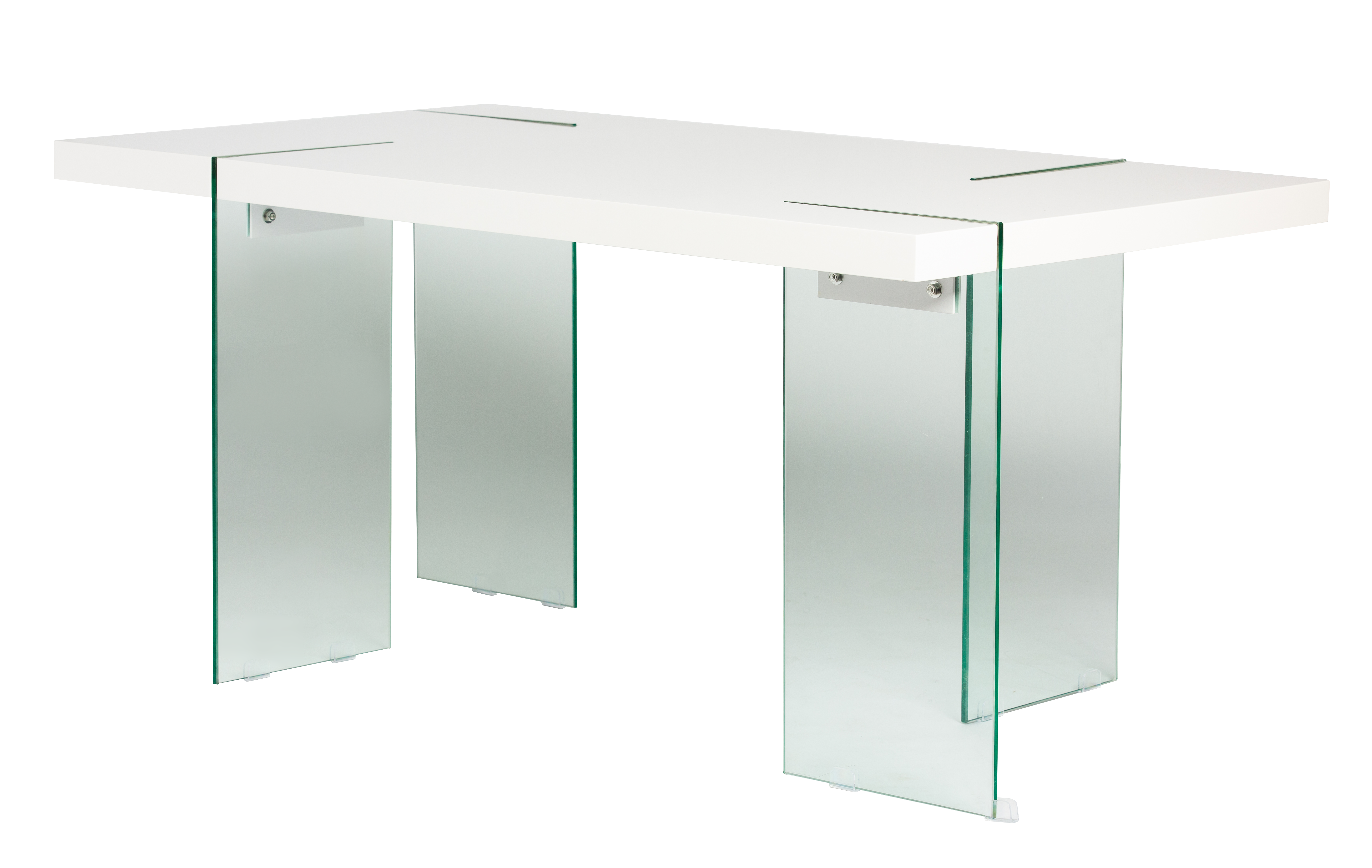 Mesa de Comedor Erich de Cristal y Alto Brillo Blanco Moderna
