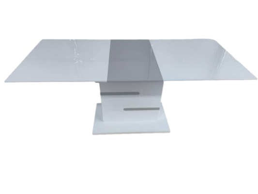 Mesa de Comedor Extensible Moderna de Alto Brillo MDF Blanco/Gris Funcional