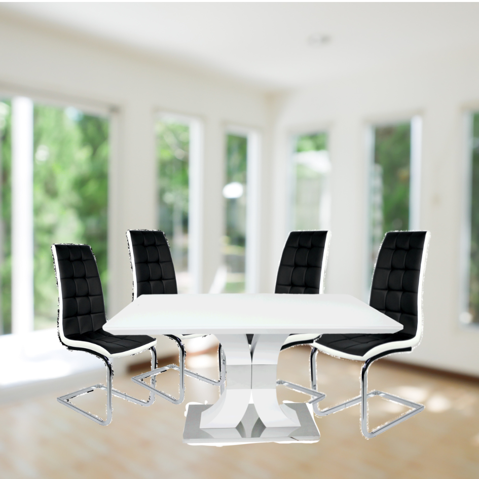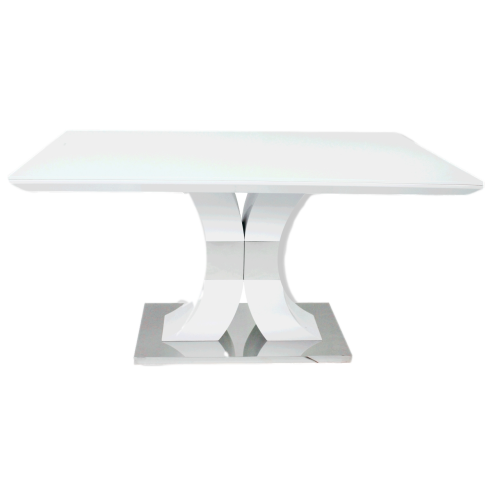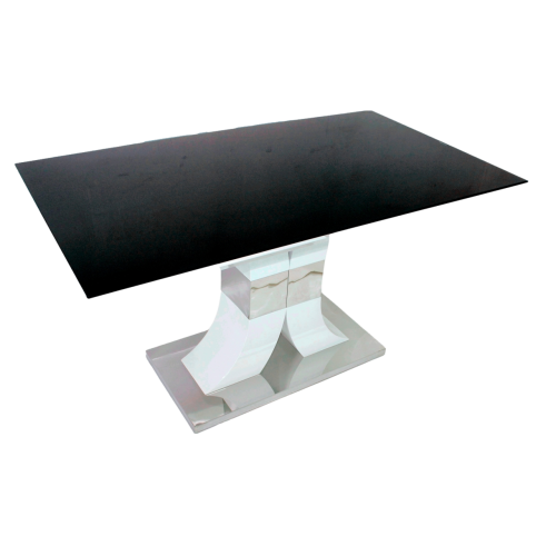 Mesa de Comedor N119 Vidrio Templado, MDF Brillante y Acero Resistente