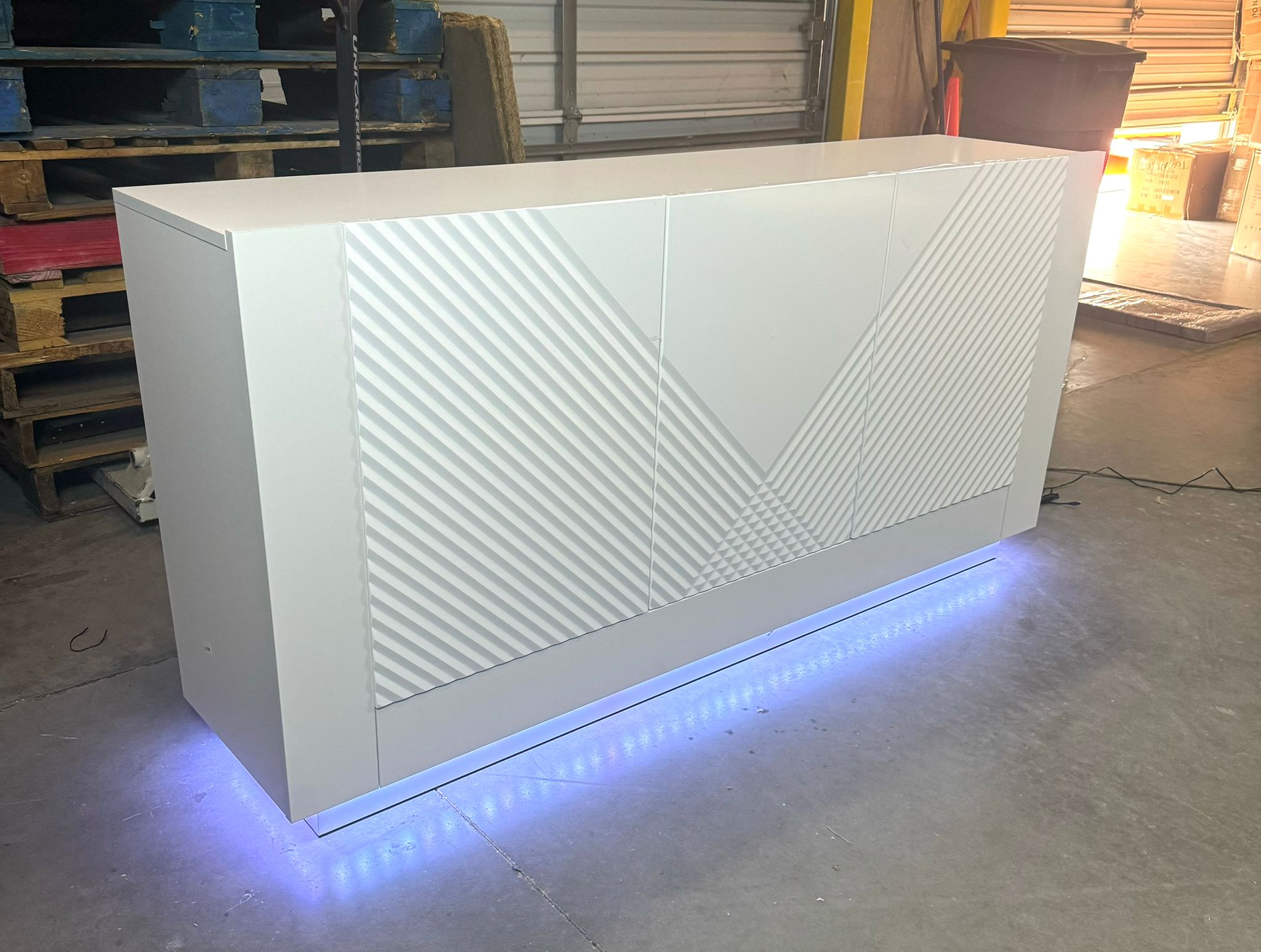 Moderno Aparador Buffet Blanco Brillante con Iluminación LED para Salón