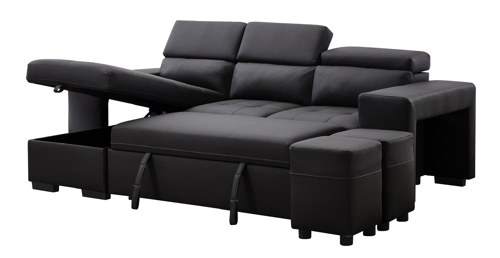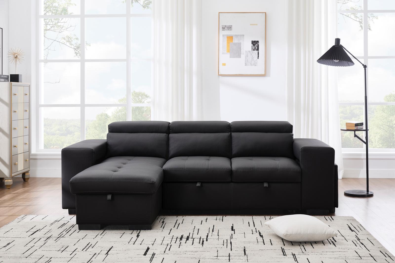 Sofá Cama Seccional Milano 2025 Negro: Diseño Moderno, Almacenamiento, Asientos Adicionales