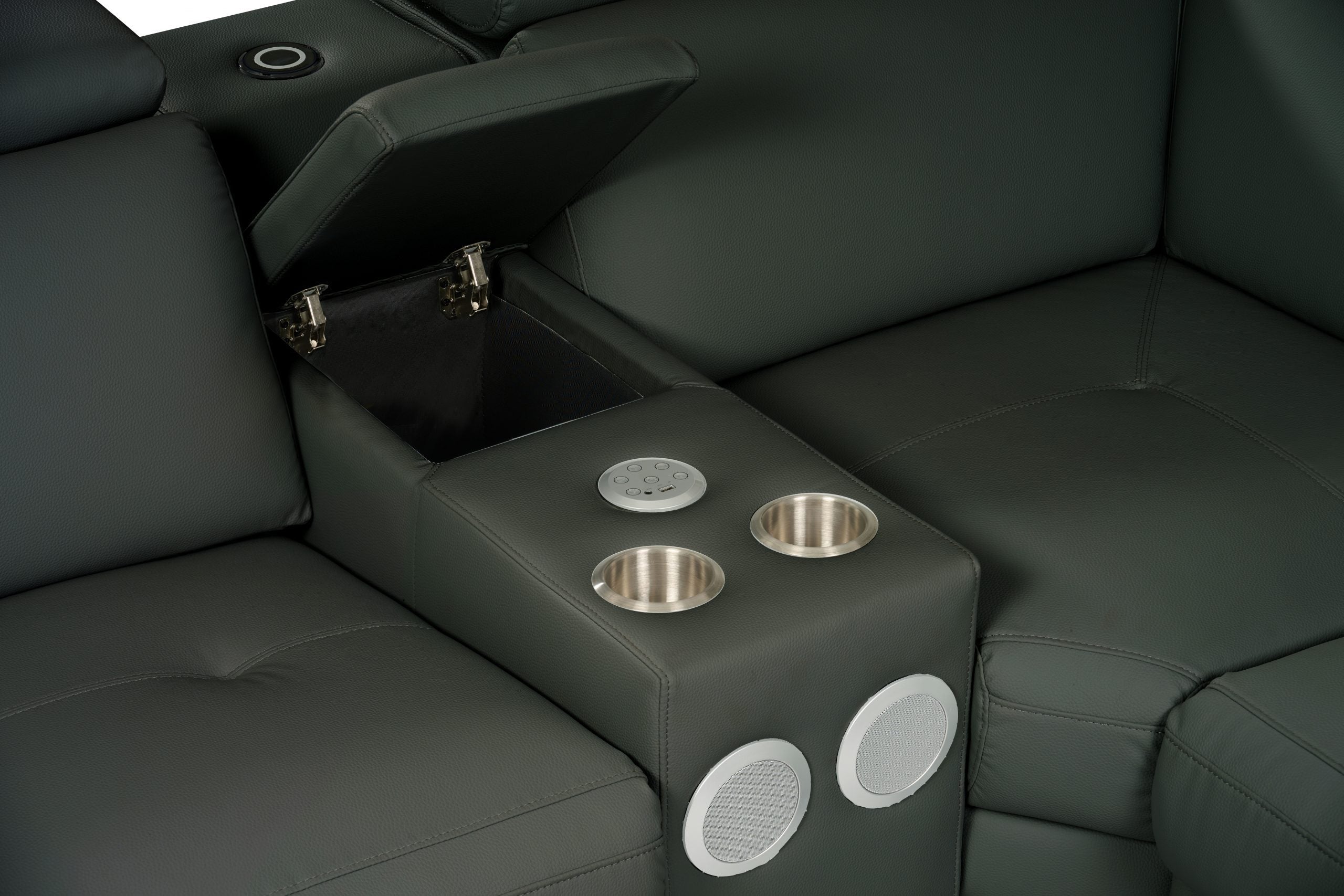 Sumérgete en la comodidad suprema con el sofá reclinable Spartacus 2025, tu nuevo rincón de relajación favorito. Disfruta de la experiencia cinematográfica en casa con su sistema Bluetooth y altavoces integrados, mientras cargas tus dispositivos en el puerto USB. Su estructura de madera maciza y espuma de alta densidad garantizan durabilidad y un confort excepcional para tus momentos de ocio. Con elegantes patas cromadas y reposacabezas ajustables, este sofá de cuero ecológico negro es el toque moderno que tu salón necesita.