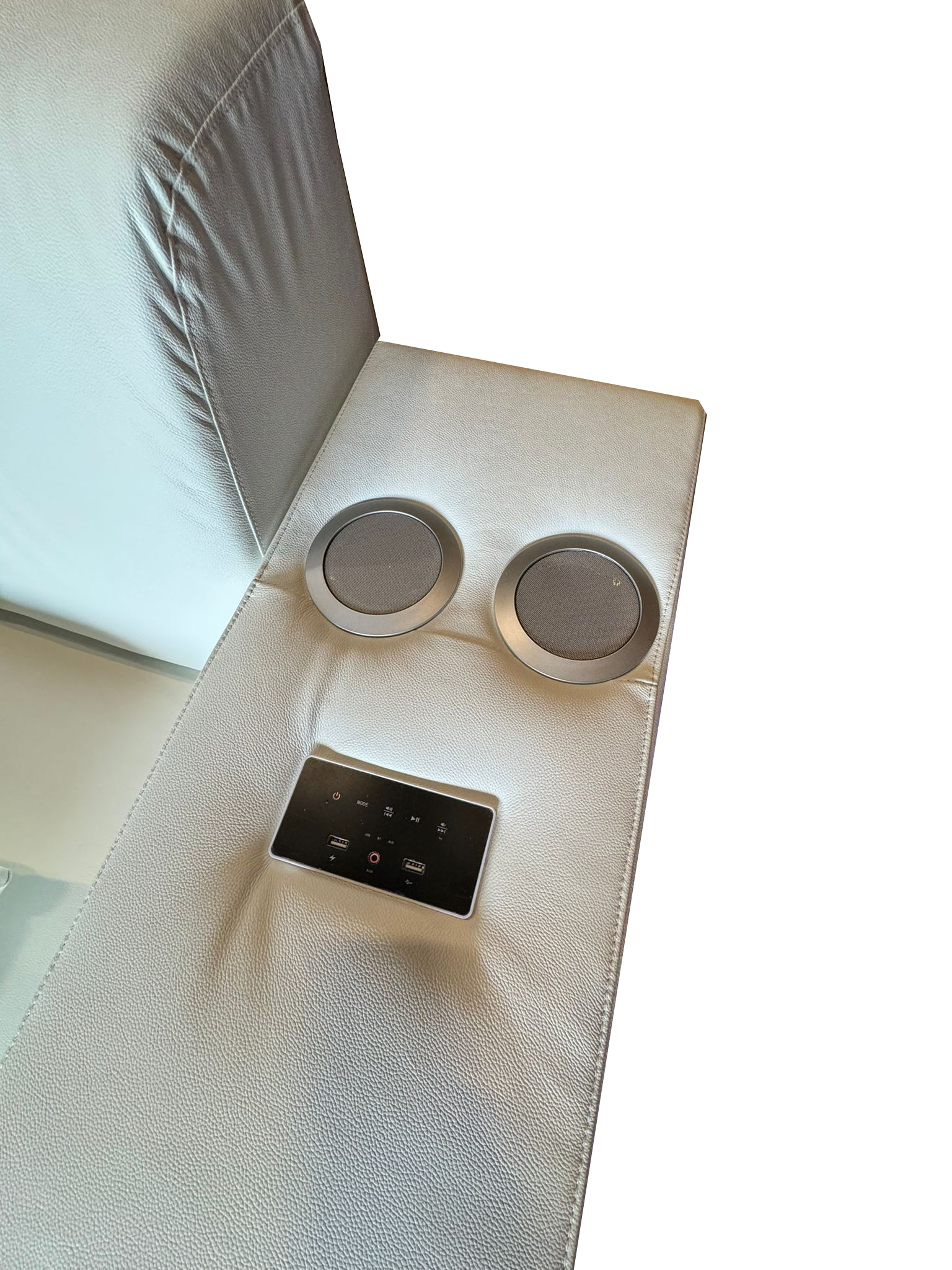 Sofá Seccional Boa LED Blanco Derecho, Cuero Genuino, Altavoces, Luces Integradas