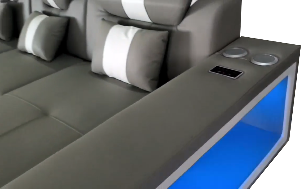 Sofá Seccional Boa LED Gris Derecho Lujoso con Altavoces Bluetooth Integrados