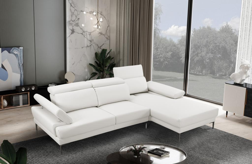 Sofá Seccional Kim Blanco Derecha Lujoso Piel Ecológica Patas Cromadas Espacioso