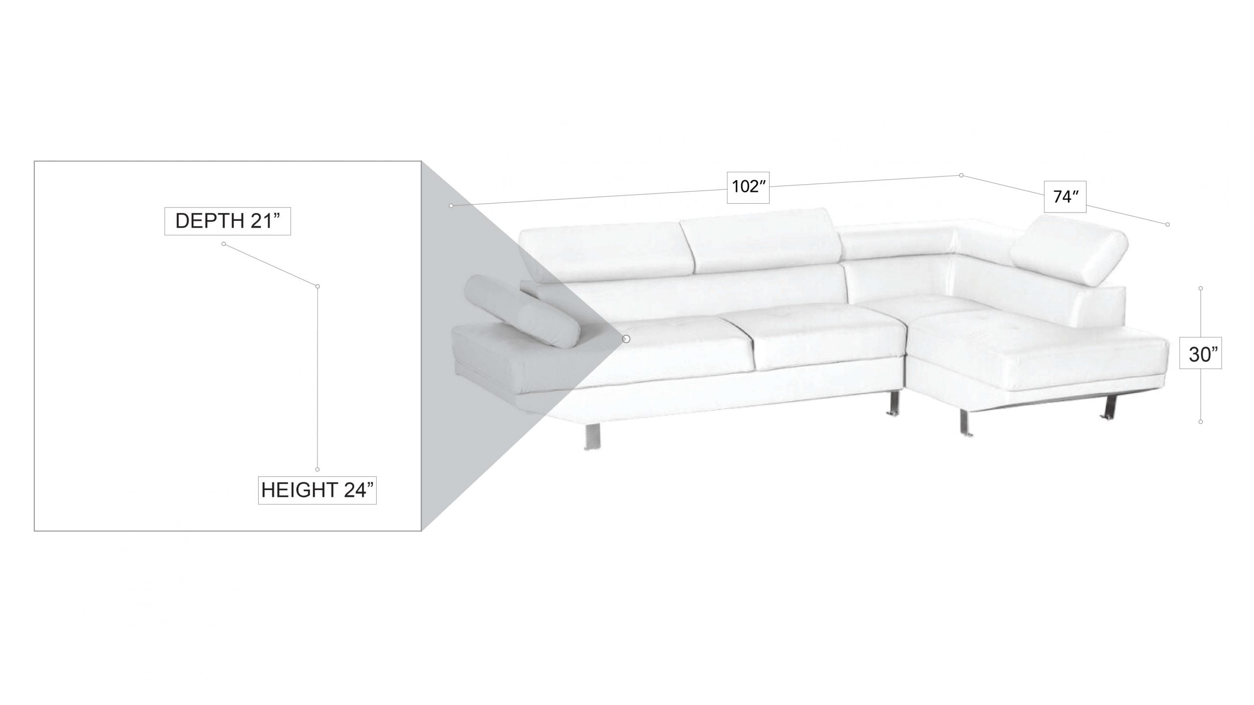 Sofá Seccional Mykonos XL Blanco, Eco Cuero, Patas Cromadas, Cabecero Ajustable