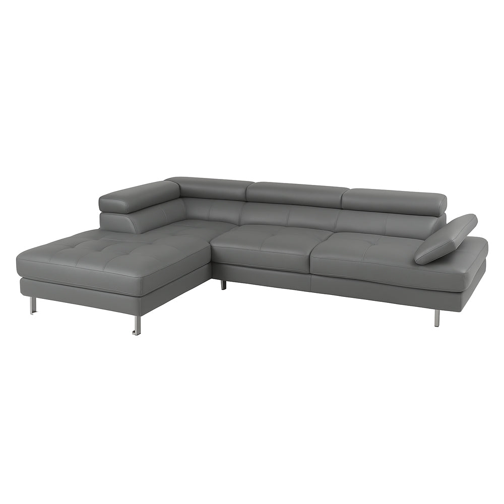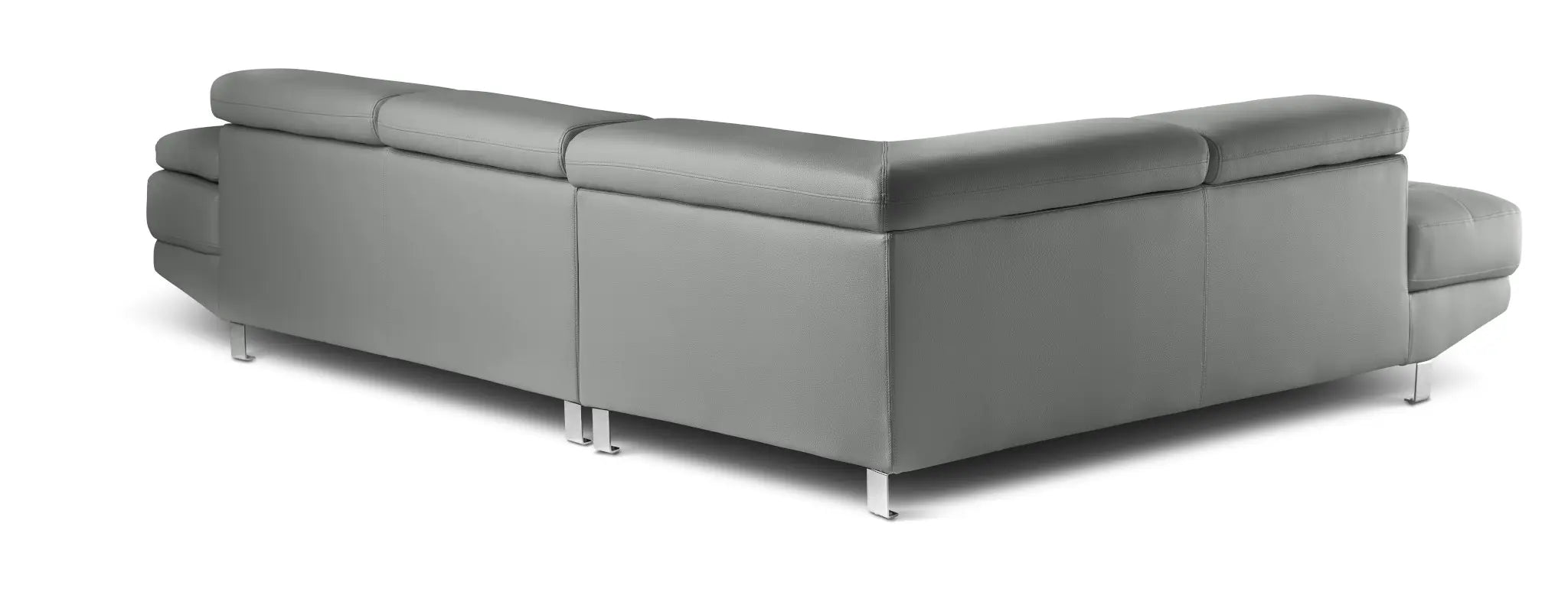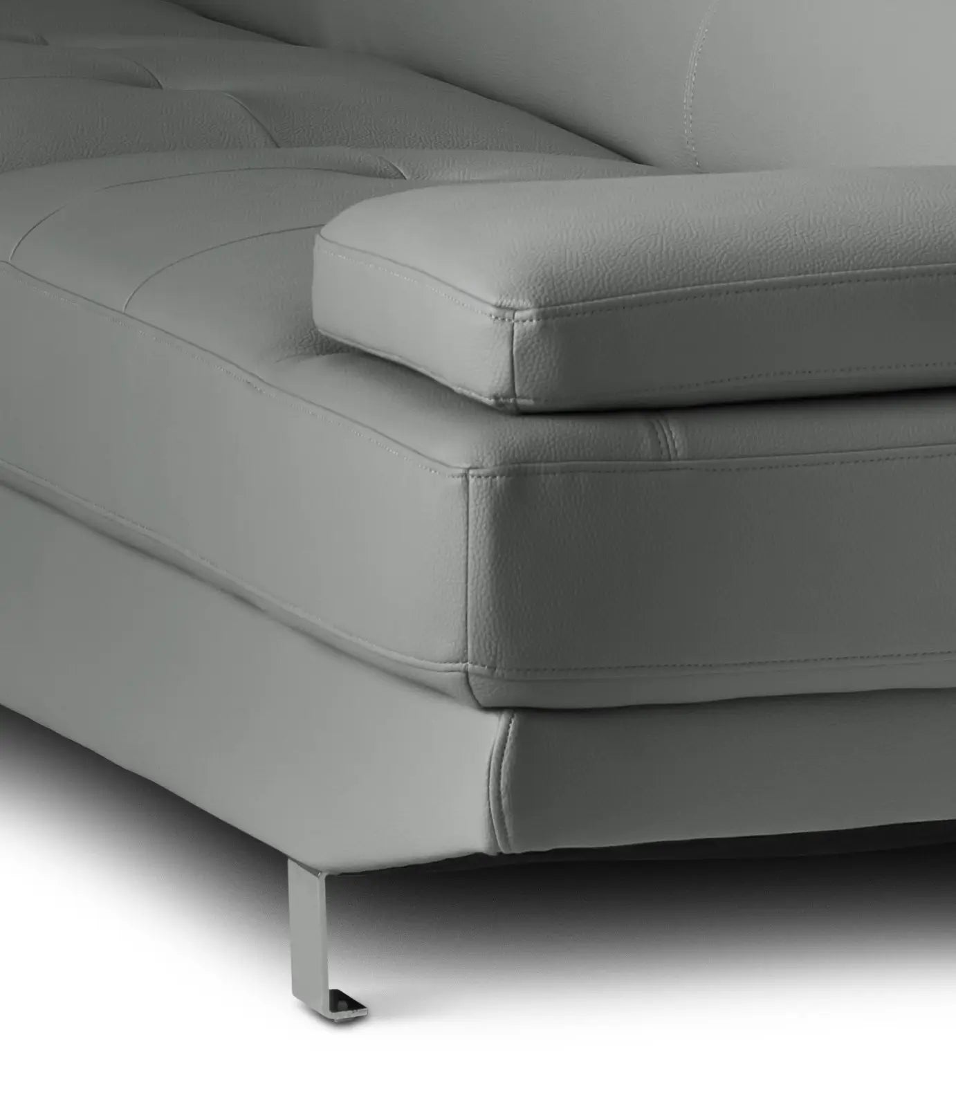 Sofá Seccional Mykonos XL Izquierdo Gris Cuero Ecológico Lujoso Reposacabezas Ajustable
