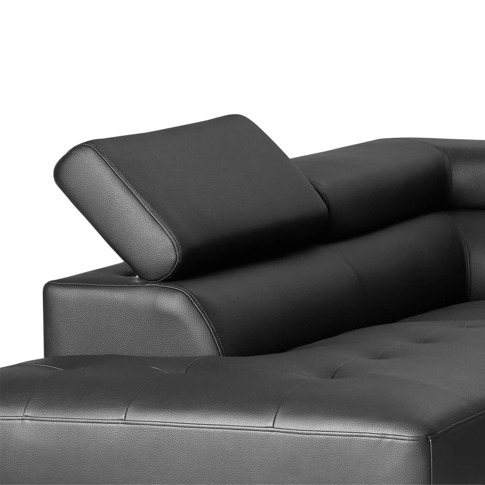 Sofá Seccional Mykonos XL Negro Derecha Lujo Moderno Reposacabezas Ajustables