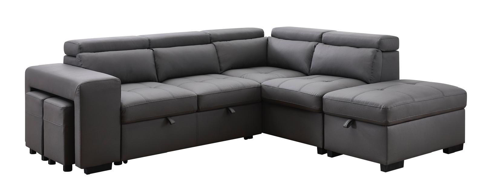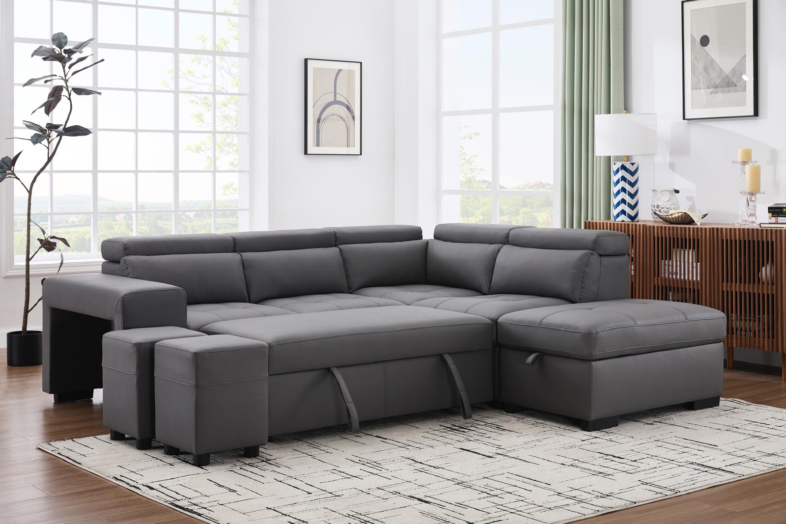 Sofá Seccional Positano 2025 Gris Derecho Cama y Almacenamiento Oculto